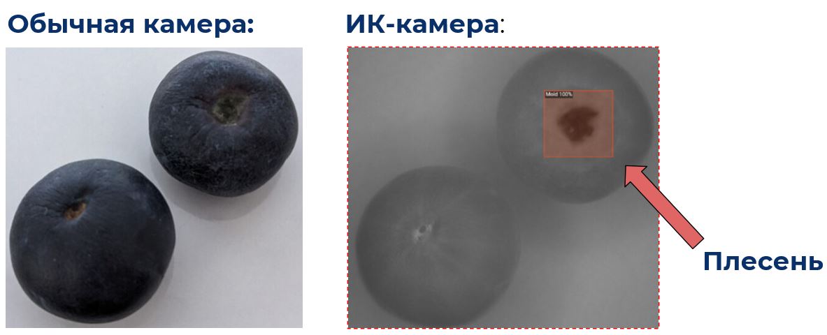 За счет анализа инфракрасного диапазона система помогает обнаруживать дефекты и неоднородности, которые могут быть не видны при обычной визуальной проверке. На выходе формируется объективная оценка качества, процент брака и данные для сравнения с оценкой технолога.
